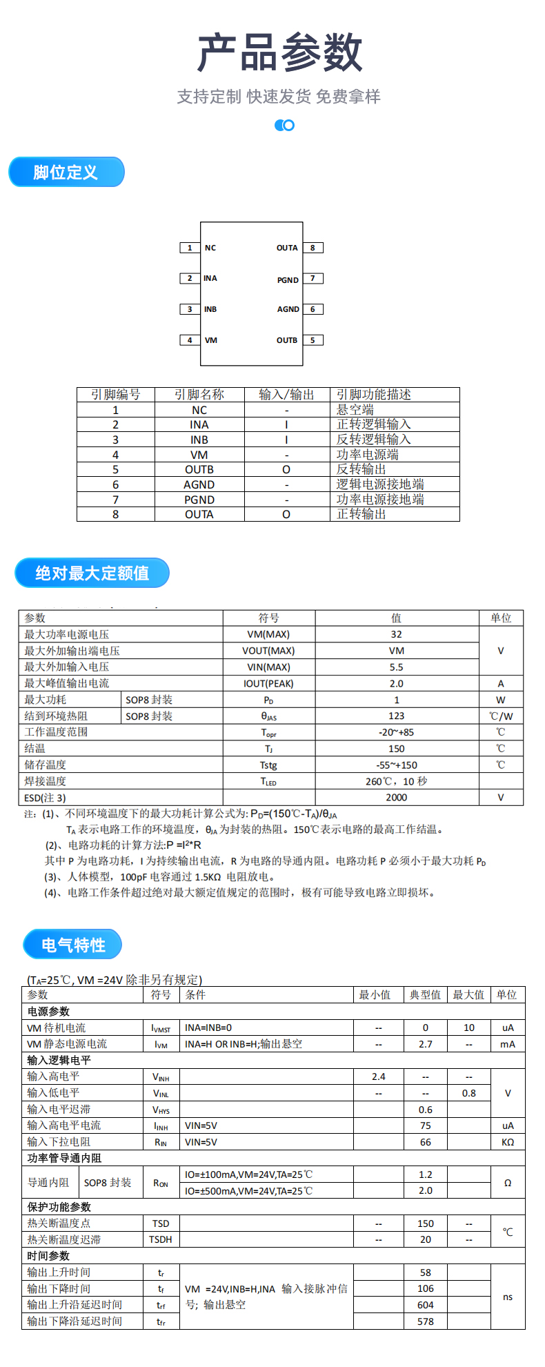 直流风扇摇头电机驱动芯片MX500HC 0.5A持续电流 2A峰值电流 工作电压8V-32V
