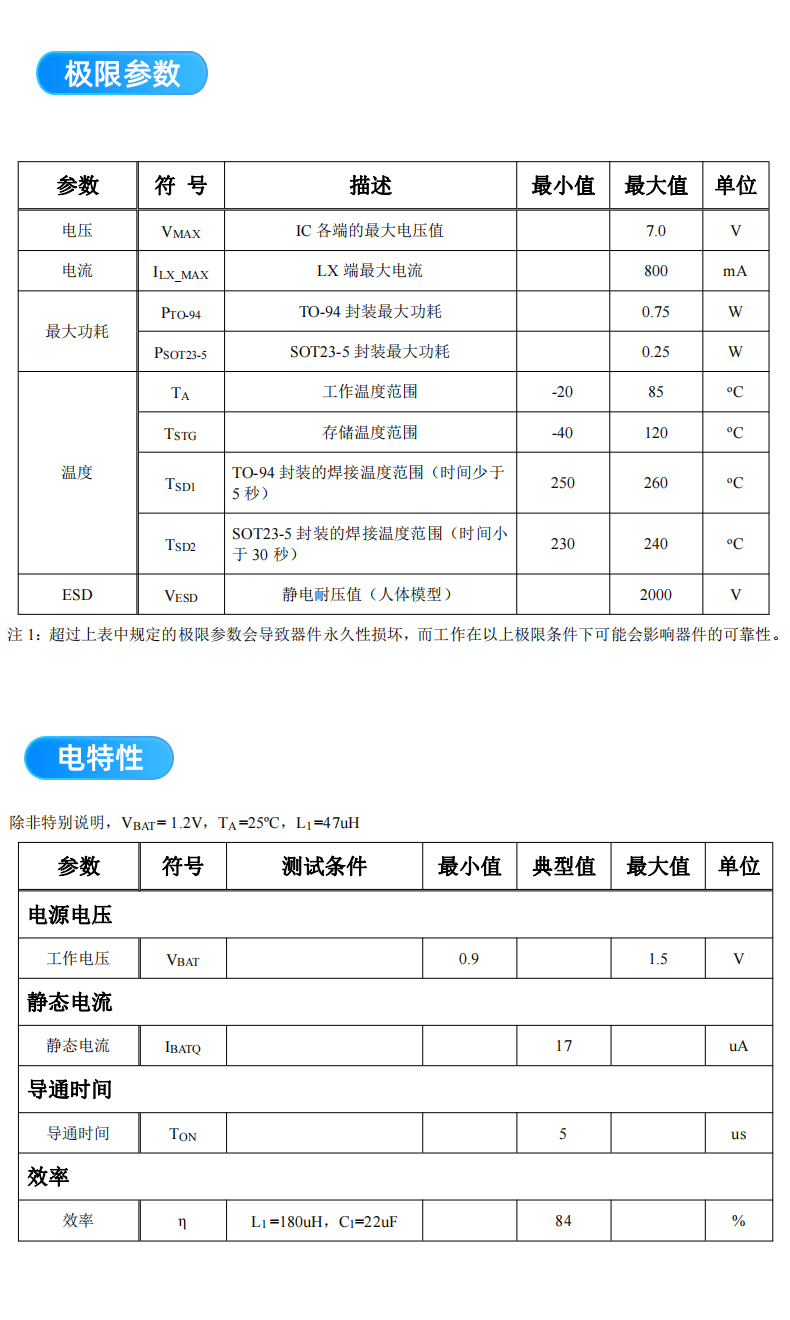 QX5252工作电压为0.9V到1.5V,适合单节AA电池或是单节镍氢电池供电。