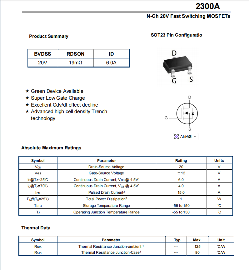 首页 > MOSFET场效应管 > 2300A(N-MOS)